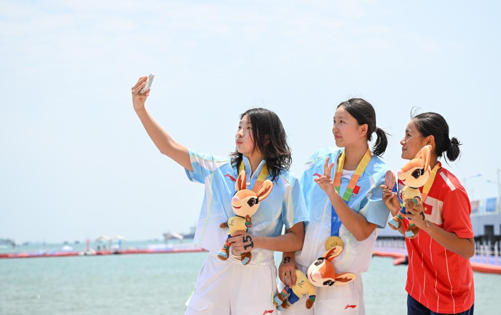 中国队目前以9金8银2铜占据奖牌榜榜首。26日,中国队选手张子扬和刘培鑫将参与公开水域游泳男子5公里的奖牌争夺,沙滩田径和龙舟将迎来收官日。